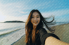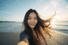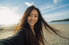 The featured selfie of the slender Asian woman captures the essence of joy and contentment at the beach. Her beaming smile resonates with the warmth of the sun, while the natural setting adds an aura of tranquility to the portrait. This is a snapshot of a genuine moment, unposed and unrehearsed.