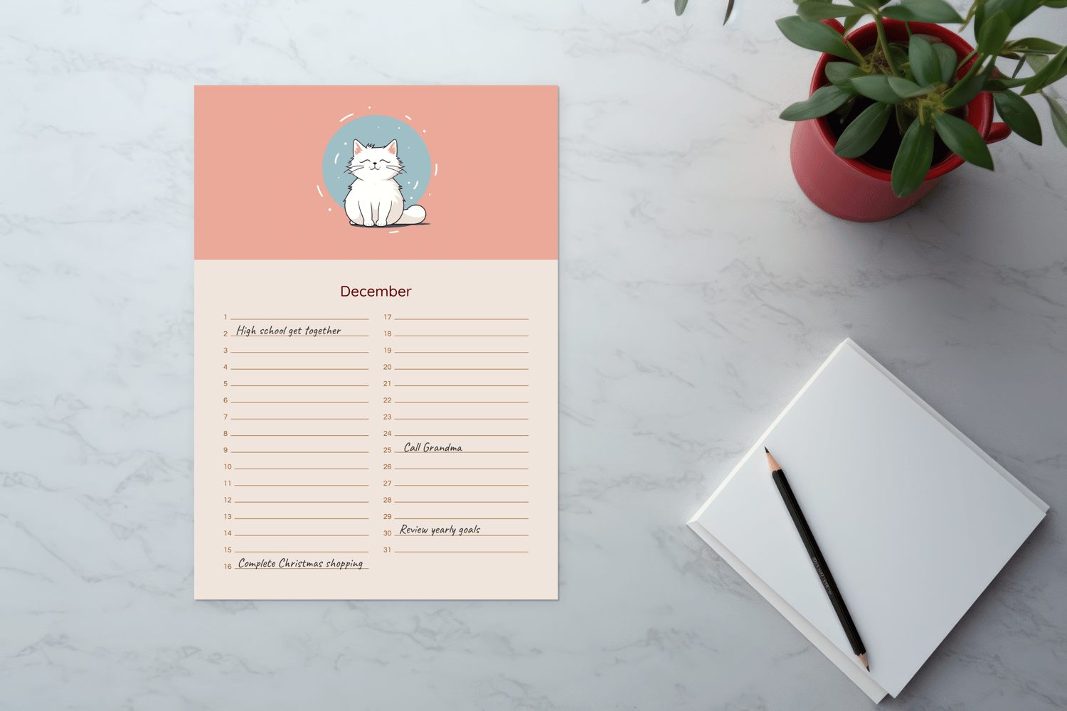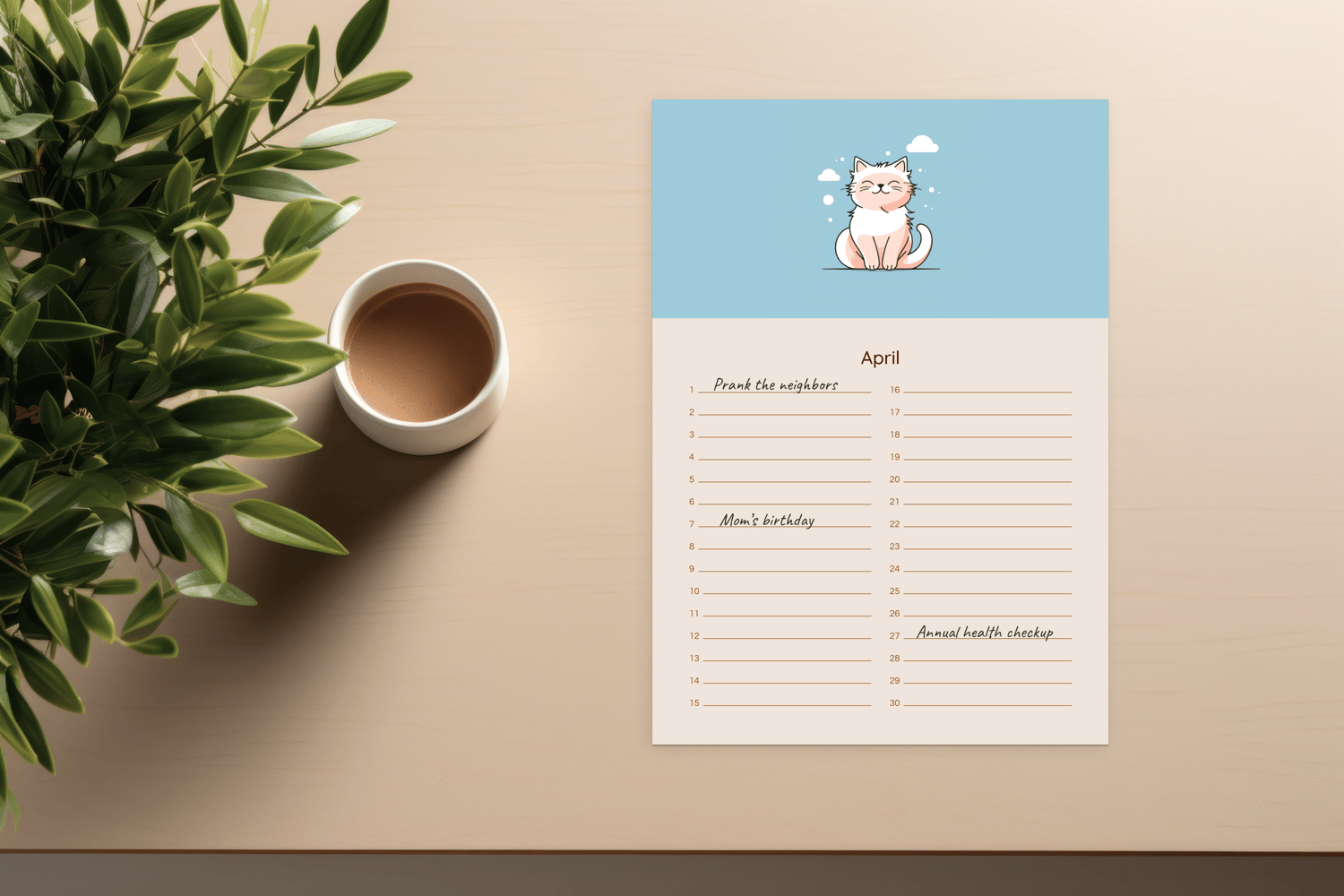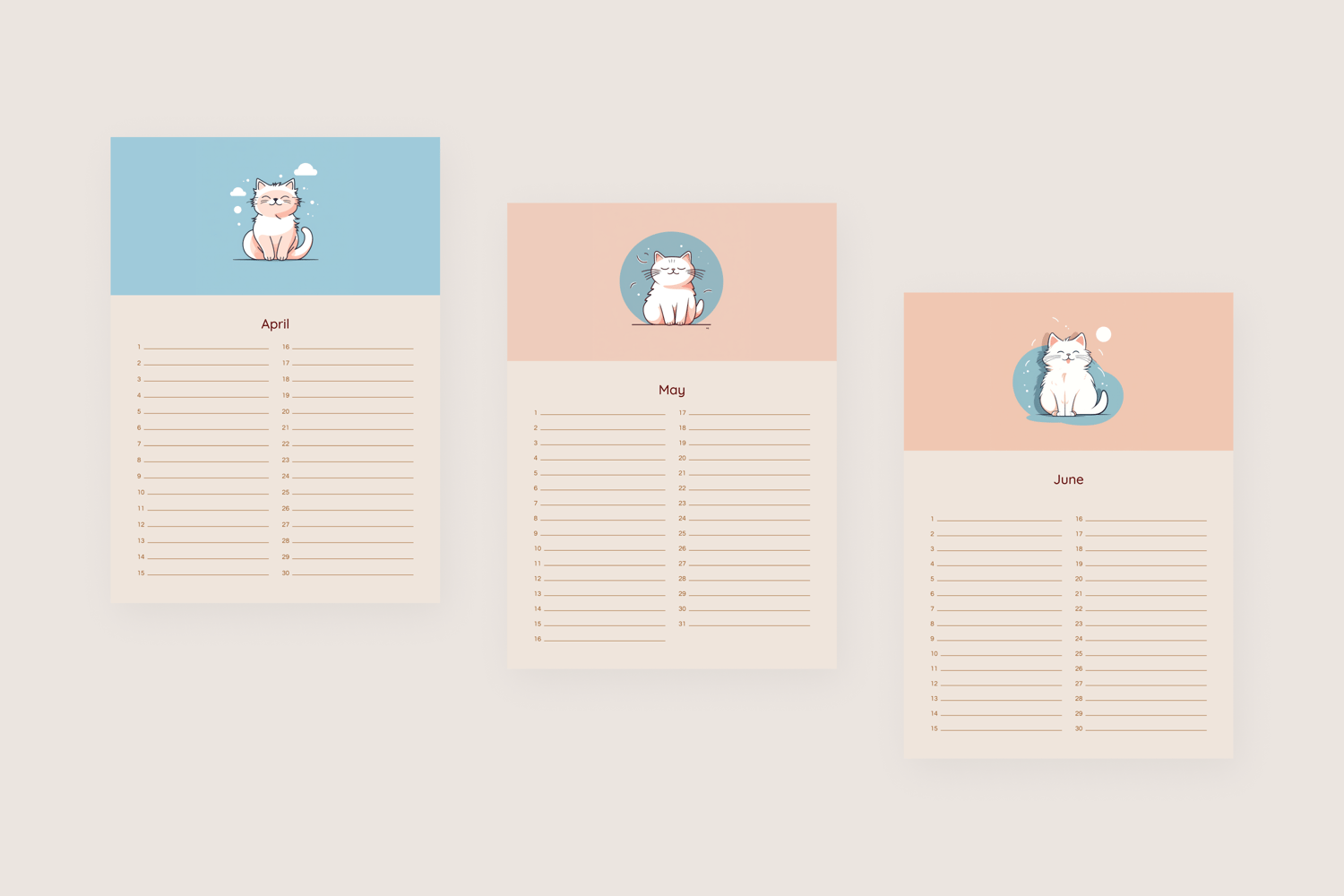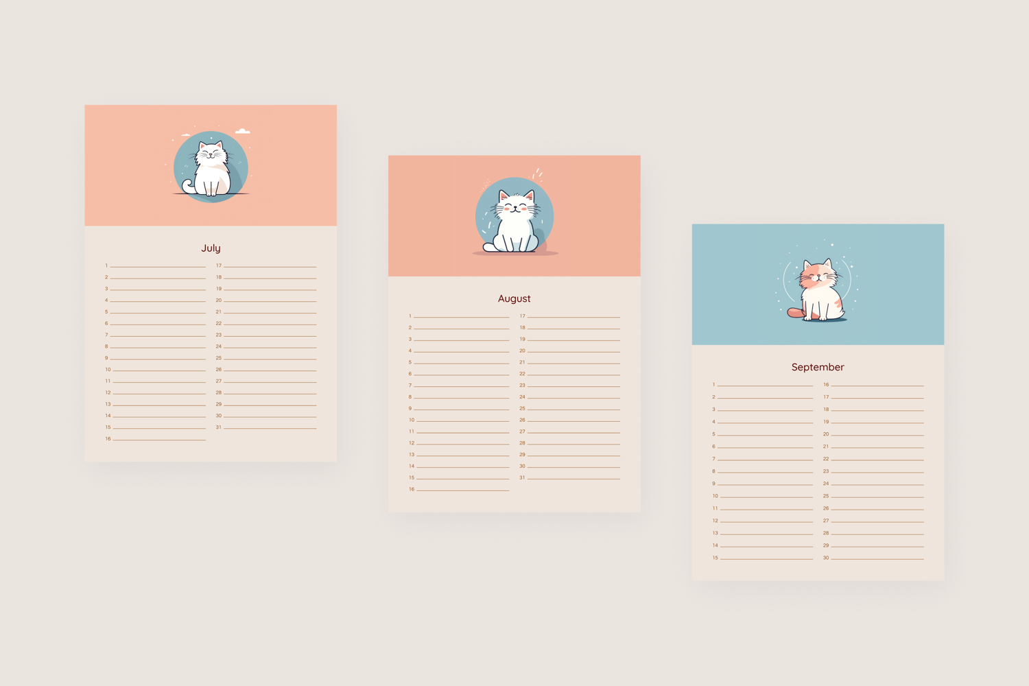 Imagine flipping through the pages and reliving your past joys and looking forward to future adventures. The "Whisker Wonders Perpetual Calendar" is more than just a calendar; it's a keepsake that evolves with you. Our minimalist illustration cats add a touch of whimsy and warmth to each page, inviting you to slow down and appreciate the small moments.