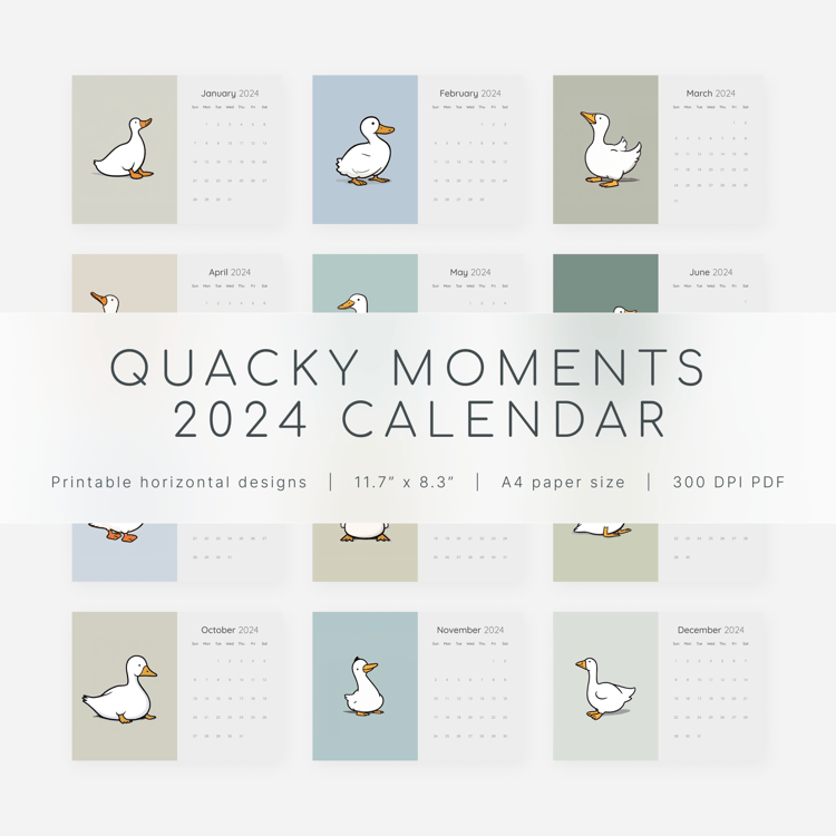 Quacky Moments 2024 - Printable Horizontal Calendar