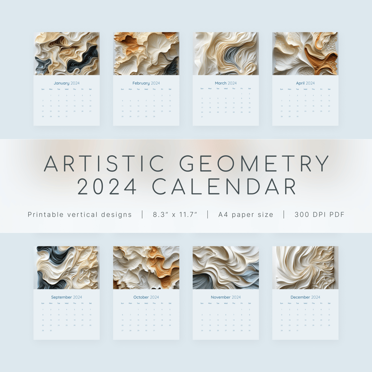 Artistic Geometry 2024 - Printable Vertical Calendar